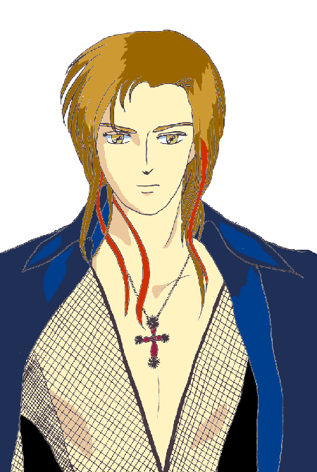 参考にした写真の方は、武田真治です。何かの舞台の役らしいですが、顔の上半分がGacktにも似ていて素敵だなて思ってモデルにしました。レース柄の服は難易度高すぎたので、網模様に変更しています。