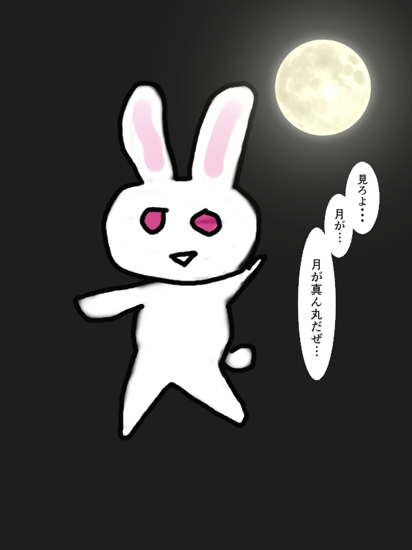 ウサギだけ描くつもりが月とセリフを足したので、ウサギ真ん中ドーン!というアンバランスさ。