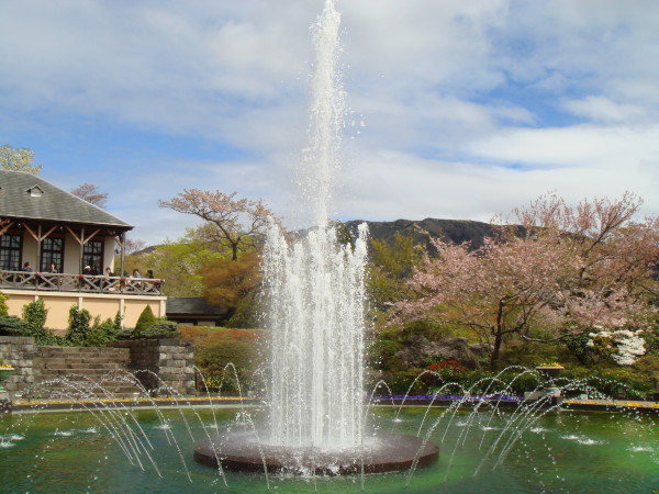 ここは箱根強羅公園。噴水がきれいでした。まだ桜も咲いていましたよ。