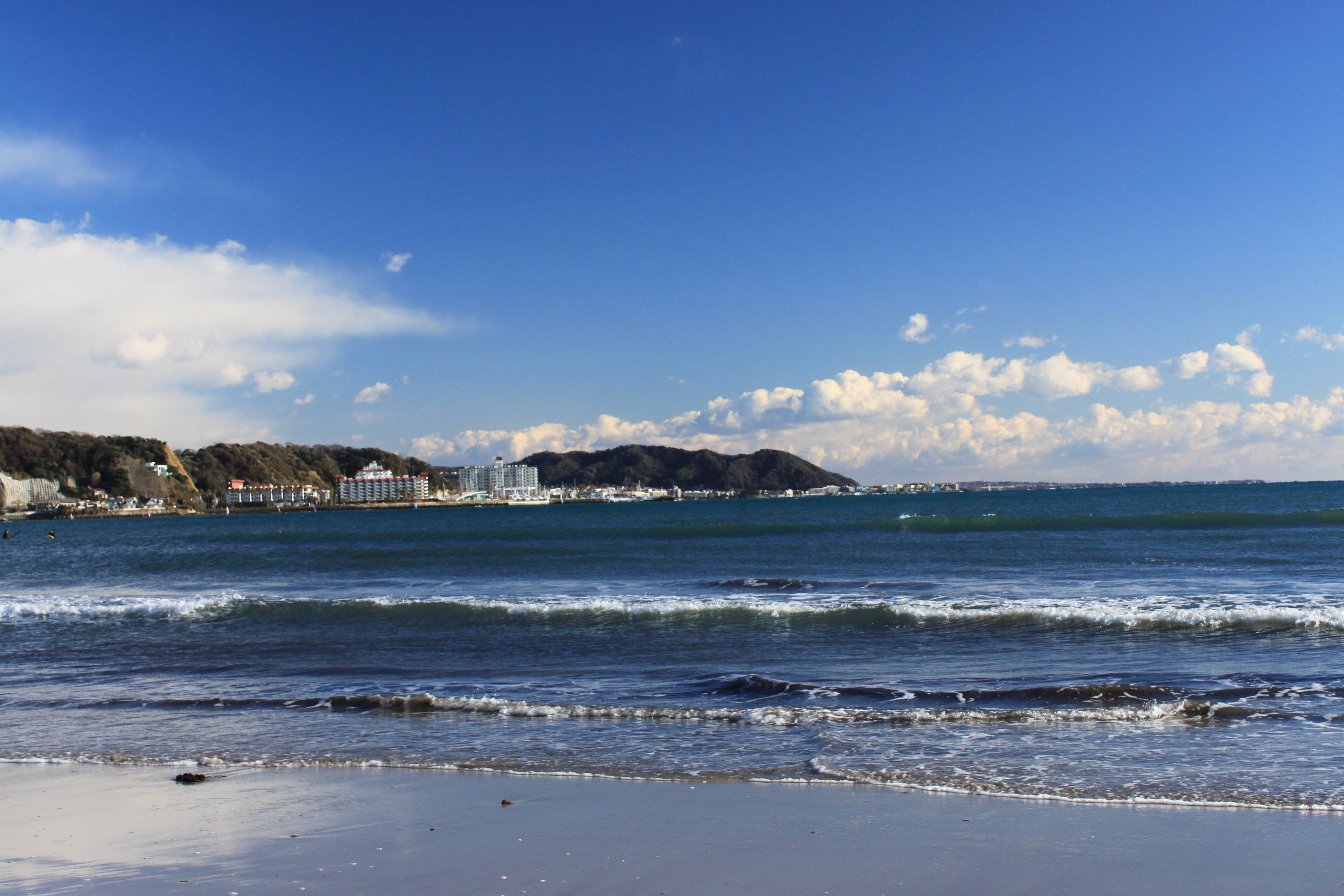 由比ガ浜。海は寒いかと思ったけれど、そんなに風もなくサーファーがアザラシのように海に浮かんでいました。久しぶりの海。何年ぶりだろうなぁ。