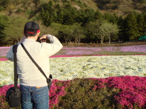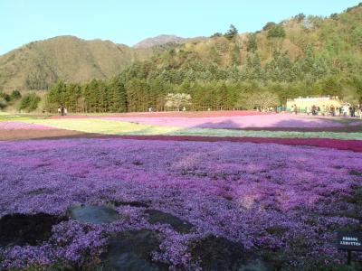 公園の端っこから撮ってみました。芝桜は5分咲きです。種類によってはまだ咲いていないものもありました。